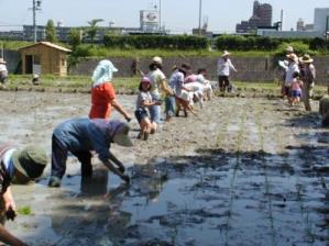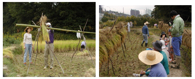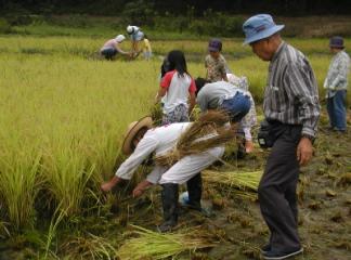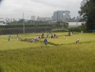 都会に暮らす市民は、袋に入って売られているおコメしか手にしません。作っている風景は漠然と思い浮かぶ程度。ここでは、田んぼの喜びや苦労、助け合いや、人・田んぼの稲や鳥、虫などのいきものたちとの直接的なふれあいを大切に考え作業を行っています。