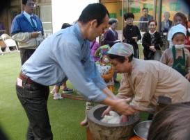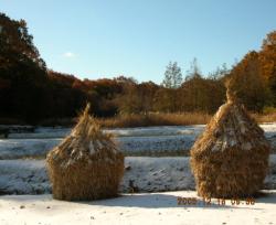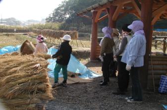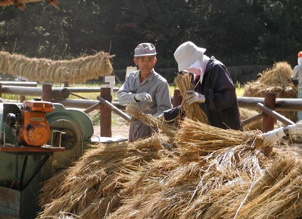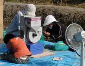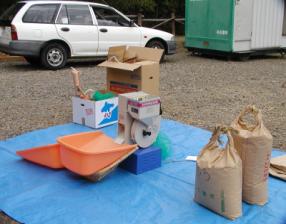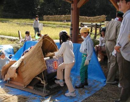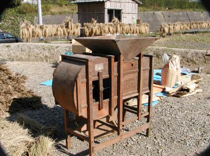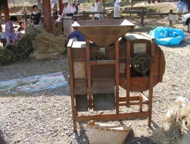 * 唐箕(とうみ)を使って、重い籾と軽い籾とを選別します。
